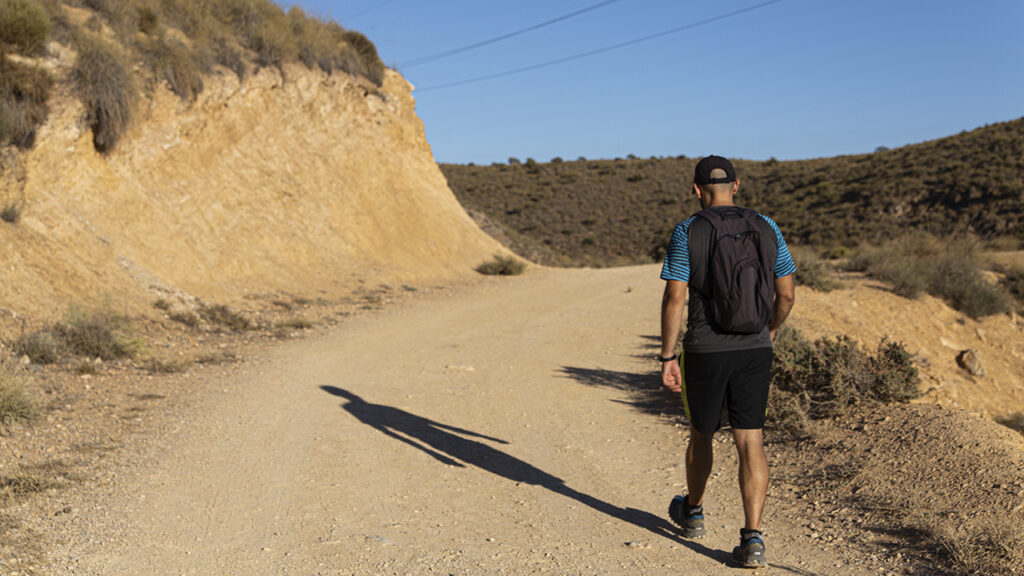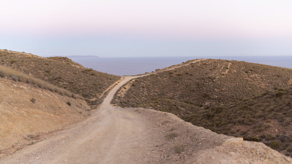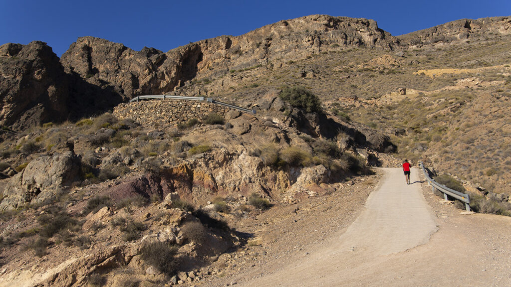 Para comenzar la ruta, podremos subir en coche y aparcarlo en las inmediaciones del cementerio municipal de Aguadulce o subir andando hasta este punto desde la Avenida Carlos III (paradas de autobús) a través de la Rambla la Gitana. Al final de la Rambla encontramos ya un camino de tierra junto a las instalaciones del cementerio. Deberemos seguir el camino de tierra siempre en dirección norte, ignorando las bifurcaciones.