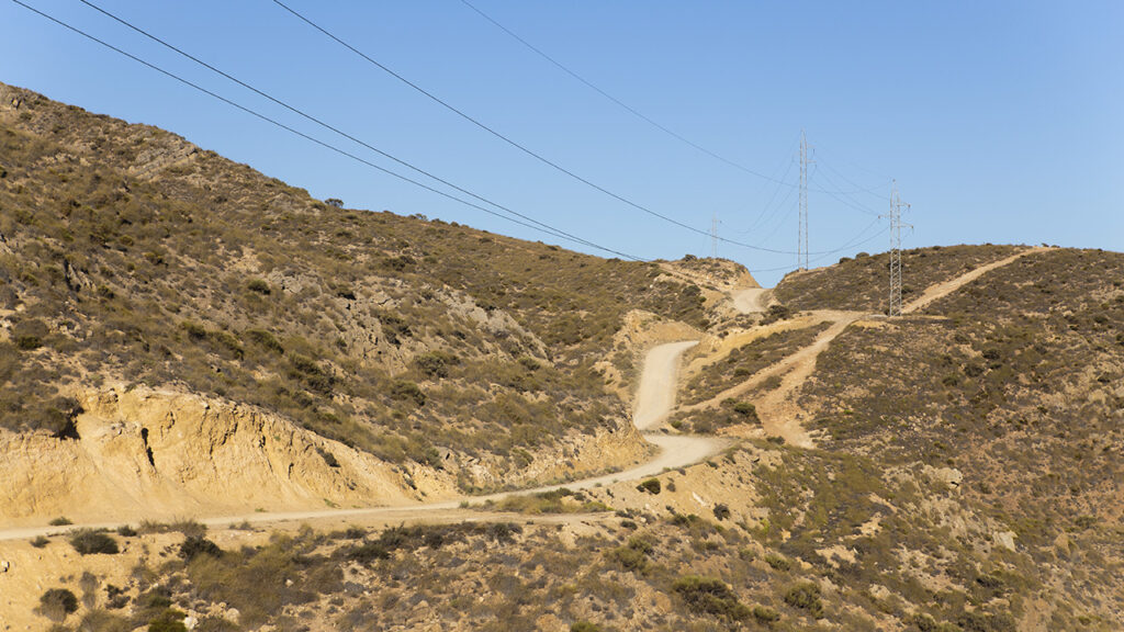 La subida continuará hasta una bifurcación. A la izquierda, con una leve pendiente y señalizado por una pequeña baliza, podremos realizar ruta Tesoros Escondidos, a la derecha continuaremos camino a las antenas.